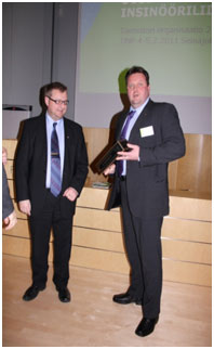Mikkelin Insinöörien puheenjohtaja insinööri Arto Puumalainen kävi pokkaamassa valtakunnallisen huomionosoituksen Uuden Insinööriliiton Järjestöjohdon neuvottelupäivillä 4. - 5.2. Seinäjoella.